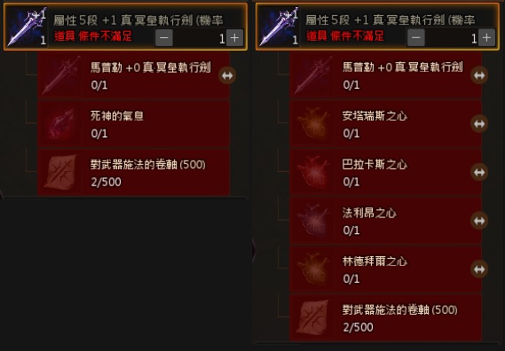 ► 製作的道具是相同的,但是材料不同,所以保底次數是分開計算。